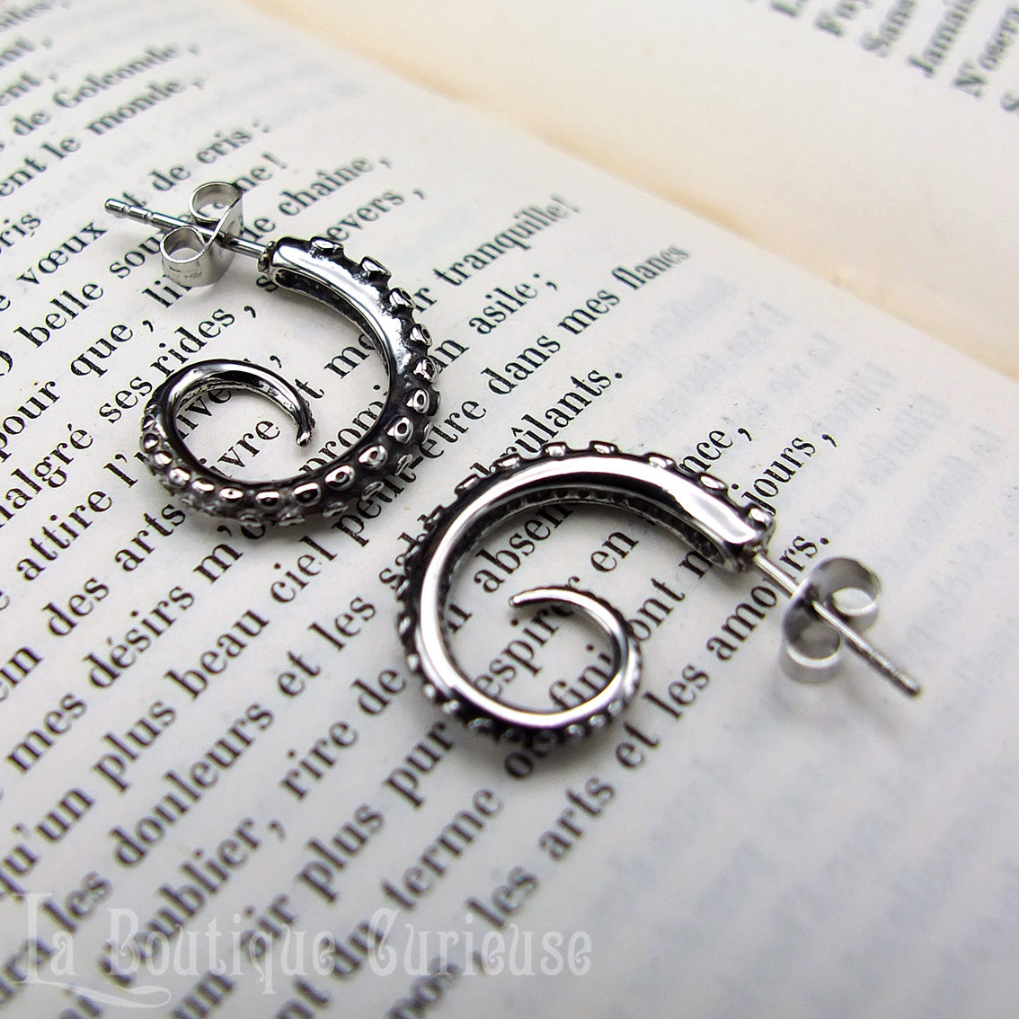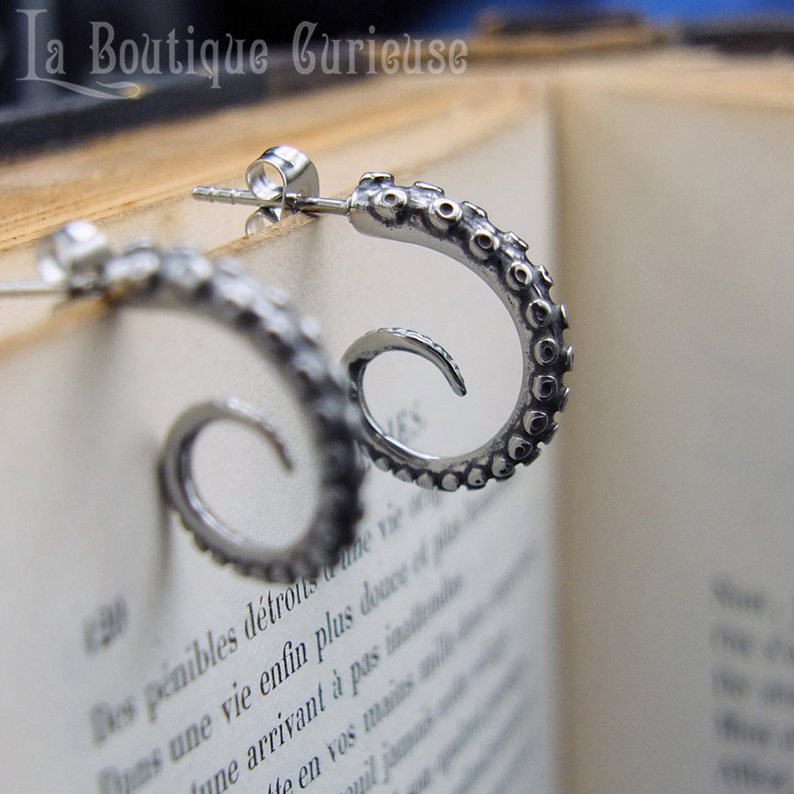 Superbes boucles d'oreilles très détaillées en forme de tentacules type créoles pour une plongée toute en discrétion et originalité dans les univers de Lovecraft ou Jules Verne.