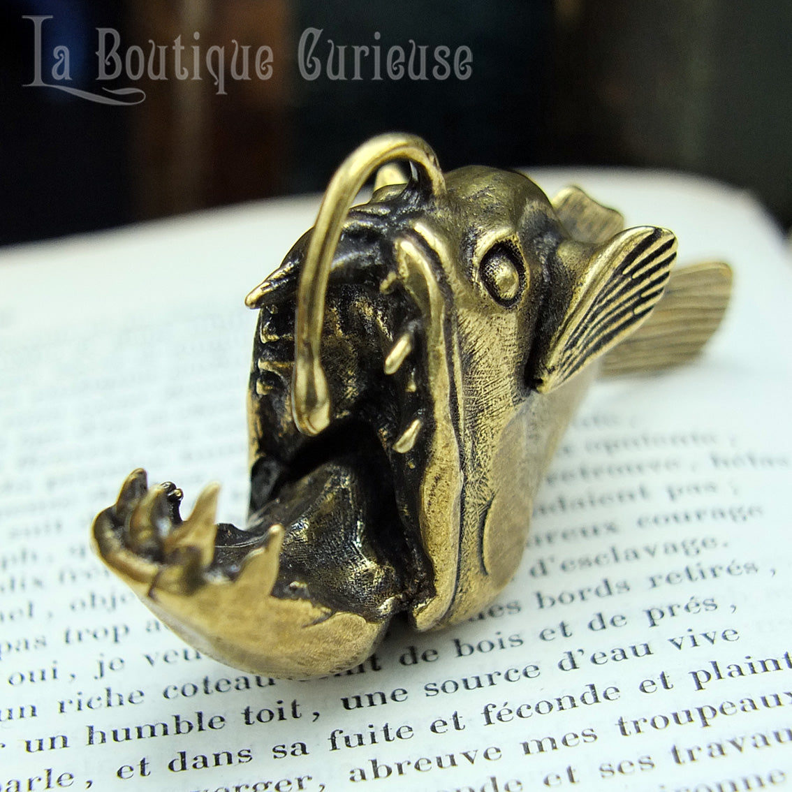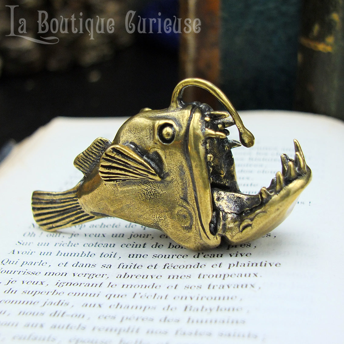 Cette statuette de baudroie en laiton massif représente l’un des poissons les plus fascinants des profondeurs marines. Avec sa silhouette singulière et son célèbre leurre lumineux, la baudroie est LA créature emblématique des abysses.